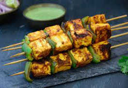 Cottage Cheese Chunks marinated in spices & grilled in tandoor