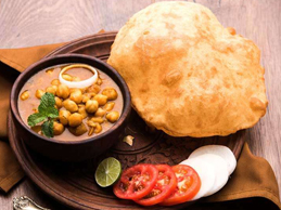Deep Fried hollow dough balls filled with boiled potatoes, chick peas & spiced herb mint water